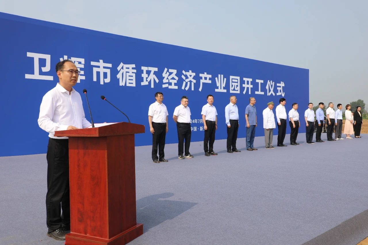 2024年7月13日上午九時,衛(wèi)輝市循環(huán)經(jīng)濟產(chǎn)業(yè)園開工儀式在循環(huán)經(jīng)濟產(chǎn)業(yè)園項目基地開工現(xiàn)場隆重舉行,新鄉(xiāng)市委書記李衛(wèi)東,新鄉(xiāng)市委常委、統(tǒng)戰(zhàn)部長祁文華,中國循環(huán)經(jīng)濟協(xié)會常務(wù)副會長趙凱,中國包裝聯(lián)合會常務(wù)副會長兼秘書長王躍中,中國飲料工業(yè)協(xié)會副理事長李濤,中國輕工企業(yè)投資發(fā)展協(xié)會副理事長劉旭,中國再生資源回收利用協(xié)會秘書長唐艷菊,北京化工大學(xué)教授黃崇品,鄭州大學(xué)教授劉仲毅,唐莊鎮(zhèn)黨委書記吳金印,衛(wèi)輝市人民政府市長王清洲,河南銀金達控股集團有限公司黨委書記、董事長閆銀鳳等領(lǐng)導(dǎo)和專家出席開工儀式。衛(wèi)輝市循環(huán)經(jīng)濟產(chǎn)業(yè)園開工儀式由新鄉(xiāng)市委常委、衛(wèi)輝市委書記崔紅建主持。