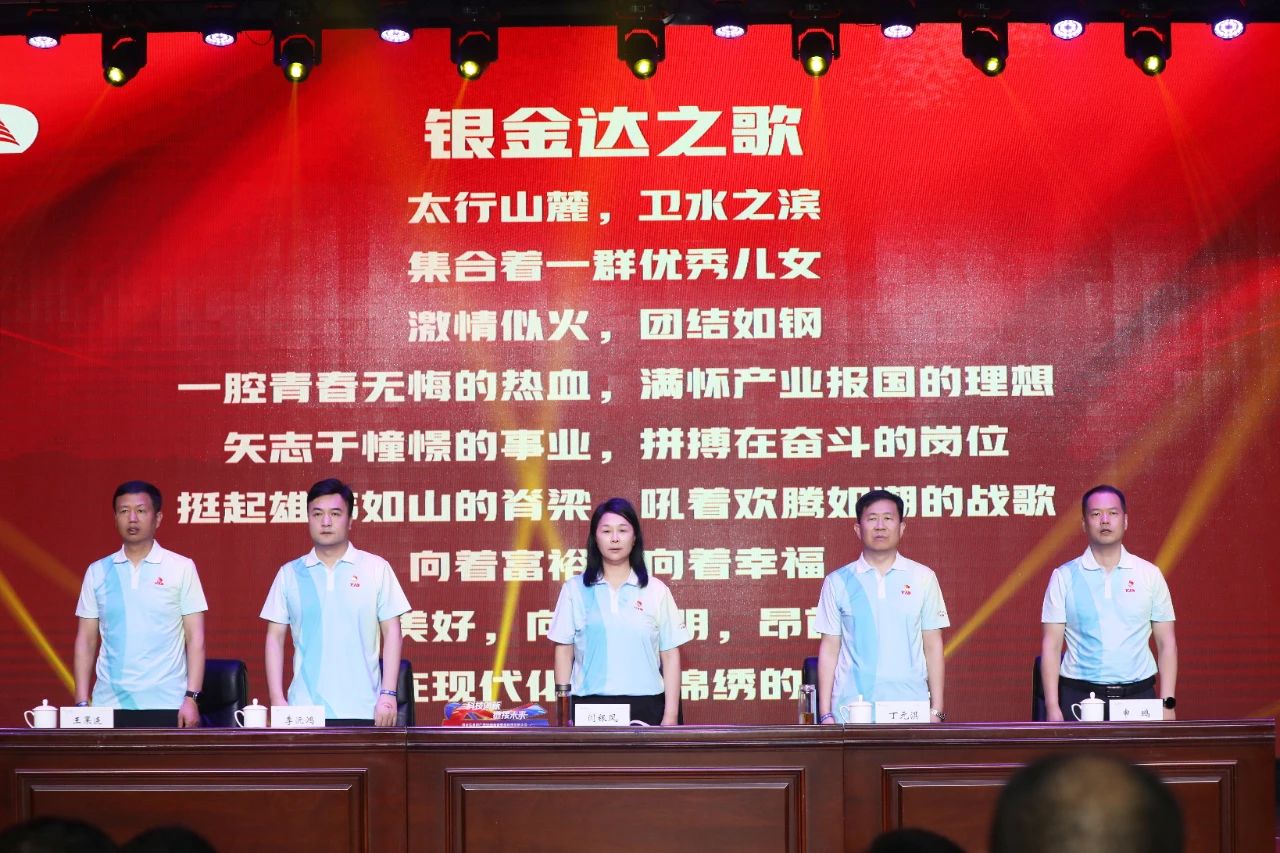 上午9:00,在唐莊干部教育學(xué)院主會場,大會在莊嚴(yán)的國歌聲中正式拉開帷幕。全體與會人員肅立合唱,愛國情懷與企業(yè)擔(dān)當(dāng)在旋律中交融。隨后,《銀金達(dá)之歌》的激昂旋律響起,唱出了銀金達(dá)人三十一年如一日的堅守與豪情。