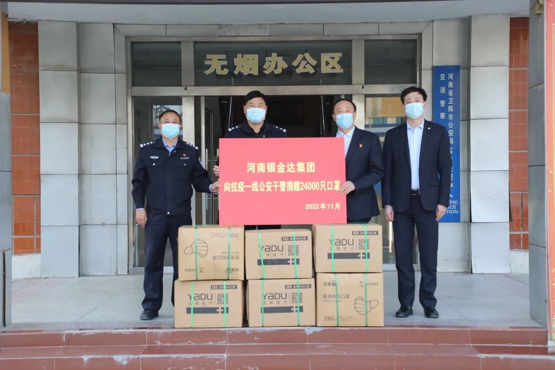 在當前疫情嚴峻復(fù)雜的形勢下,公安干警不懼風(fēng)險英勇戰(zhàn)斗在疫防一線,為守護一方平安和抗擊疫情作出了重要貢獻。銀金達集團黨委書記、董事長閆銀鳳為助力公安干警抗擊疫情,委托集團黨委副書記、工會主席楊鳳瑞和彩印公司副總經(jīng)理劉廣斌到衛(wèi)輝市公安局、衛(wèi)輝市交警大隊慰問,并捐獻防疫口罩2.4萬只,表達銀金達干部職工的熱誠問候。